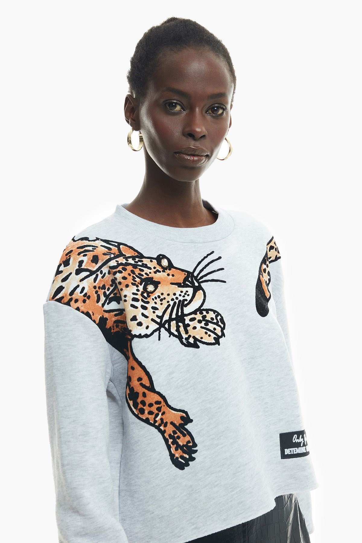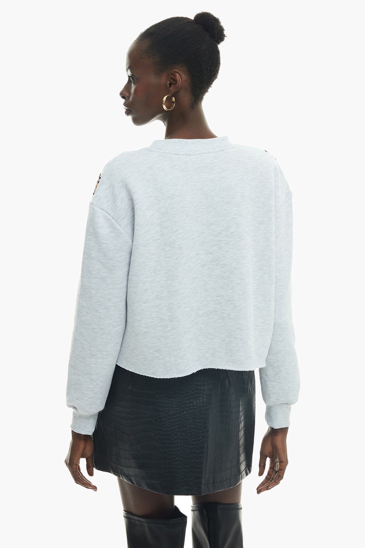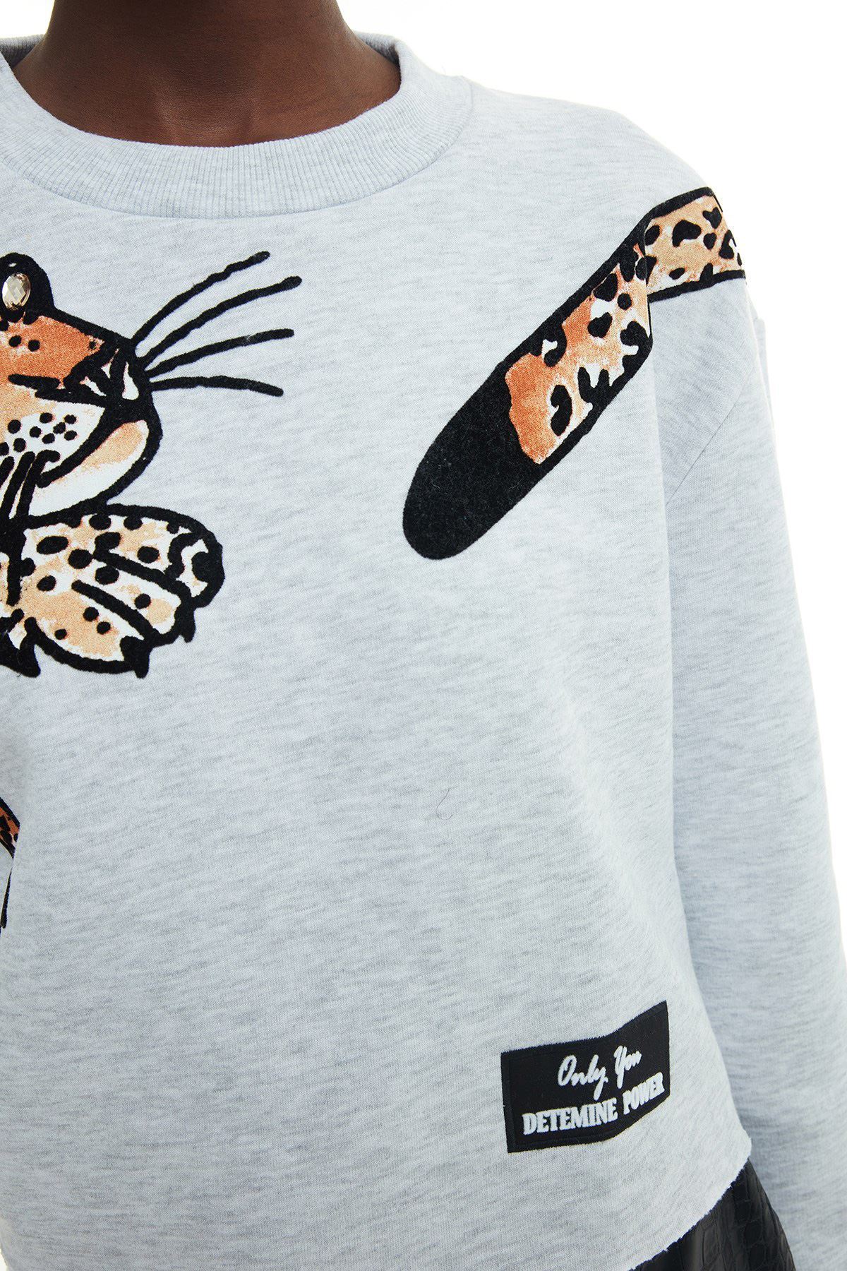 Bisiklet yaka, pamuk içerikli, uzun kollu, baskılı, rahat kesim, crop sweatshirt.